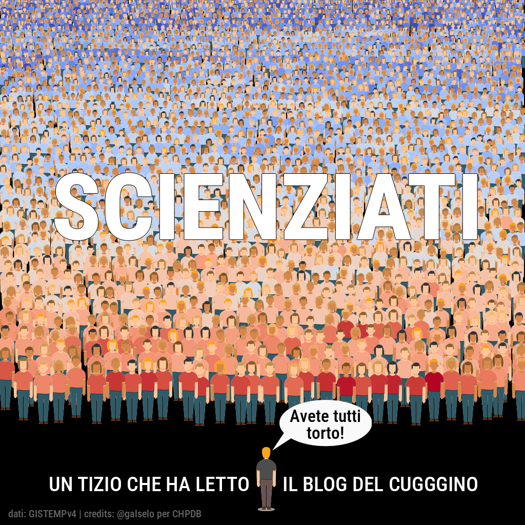 Il colore delle magliette degli scienziati nell'immagine è generato usando i dati dell'anomalia termica globale: