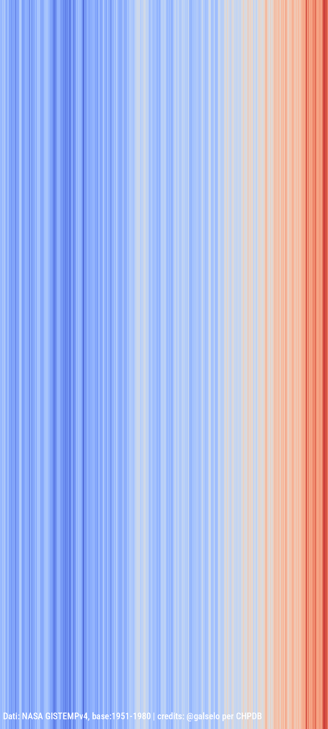 gli anni più recenti (personaggi in primo piano) sono colorati di rosso a causa dell'aumento del riscaldamento globale degli ultimi anni.